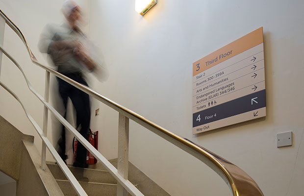 To work closely with the design and wayfinding consultants ABG Design who contracted us as their production and installation partner. The challenge was to create a suite of over 500 signs across multiple buildings of the Russell Square Campus. The solution needed to be easy to update as the campus develops and grows and be sensitive to areas with Listed Building status.